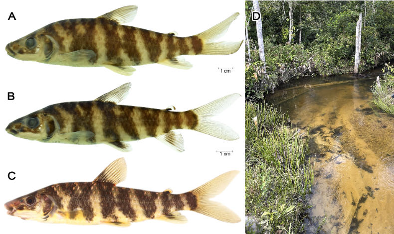 Boaretto MP, Ohara WM, Souza-Shibatta L, Birindelli JLO. New banded Leporinus (Characiformes: Anostomidae) from the Madeira River basin, Brazil, and redescription of L. bleheri, based on integrative taxonomy. Neotrop Ichthyol. 2024; 22(4):e240028. https://doi.org/10.1590/1982-0224-2024-0028